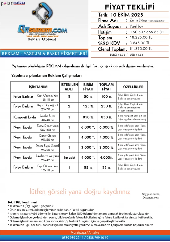 QR Sunum Reklam Atölyesi Görsel Sunum